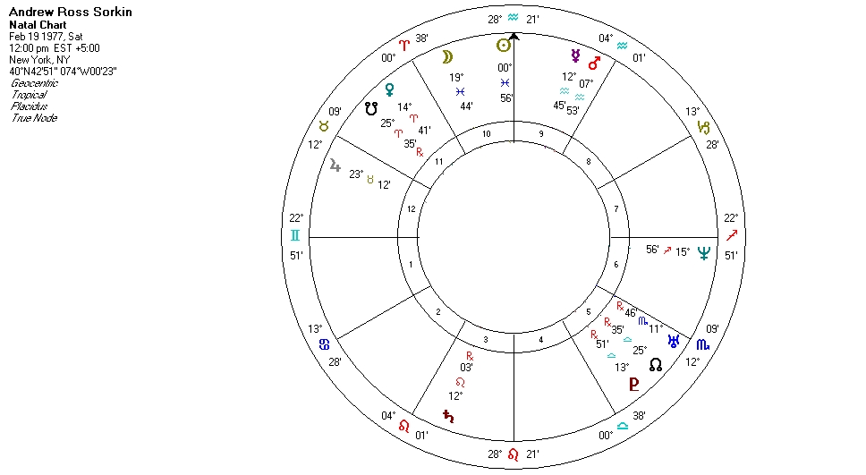 Yet with a grand trine of Venus, Saturn and Neptune, Andrew Ross Sorkin will likely continue on his merrily ignorant way. Until, of course, the calamitous day there’s a sudden major reversal he can’t explain, leaving him crushed and in need of direction, and ignorant of what astrology could do to help.